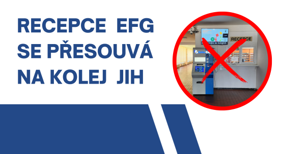 Od 1. listopadu 2025 bude uzavřena recepce na koleji EFG. Veškeré záležitosti, které jste dosud vyřizovali zde, bude nově nutné řešit přes recepci na koleji JIH.
